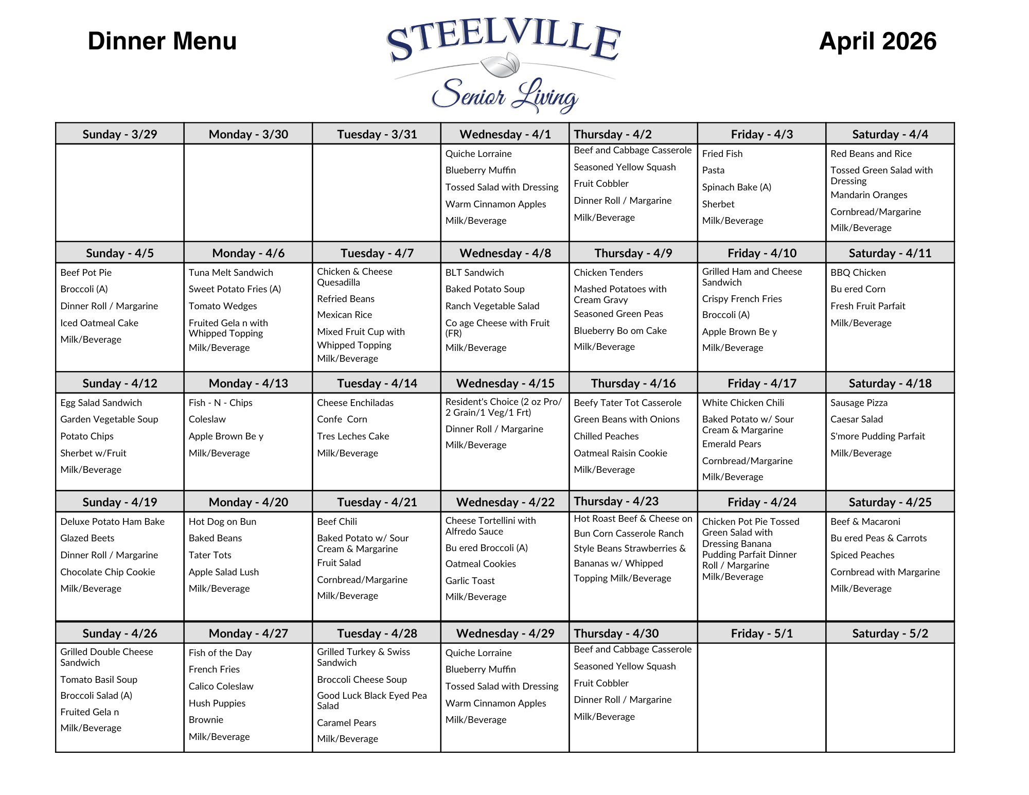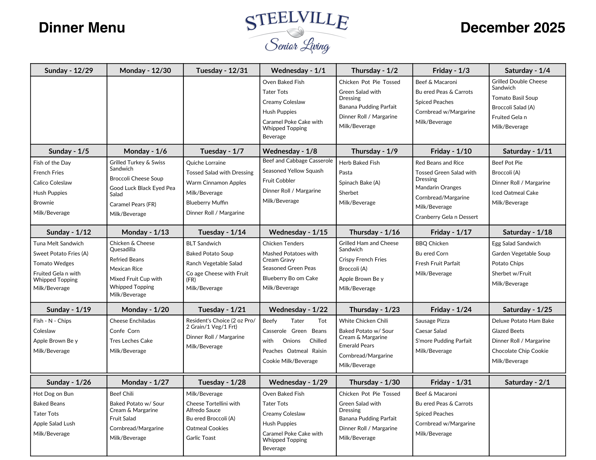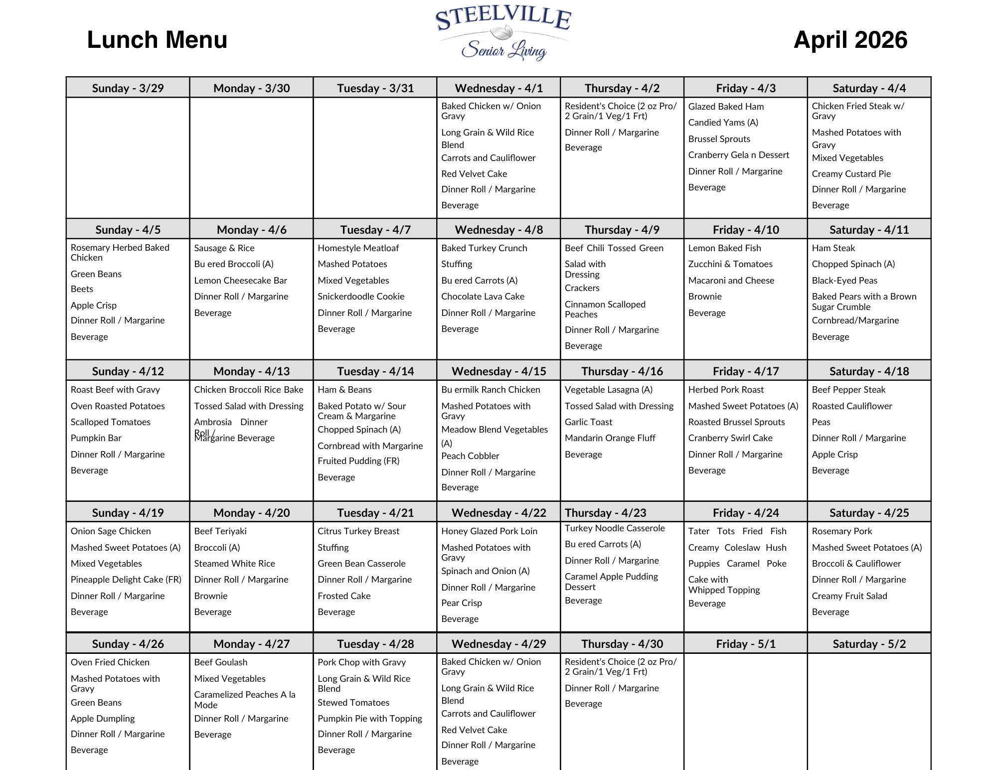 We offer an exceptional dining experience with restaurant-style service and menus, including specials served daily. The culinary team creates a variety of delicious, nutritious meals using fresh ingredients, catering to diverse tastes and dietary needs. Residents can enjoy meals in a warm and welcoming dining room that fosters a sense of community and social connection. The attentive staff ensures a pleasant dining experience, accommodating individual preferences and providing a personalized touch. With a flexible ala carte menu that changes regularly, Steelville Senior Living provides residents with a delightful and enjoyable dining experience every day. Registered Dietitians work with our professional dietary and nursing team to achieve the highest possible nutritional status of our residents. Also, Registered Dietitians provide nutritional education for our employees, resident and families.